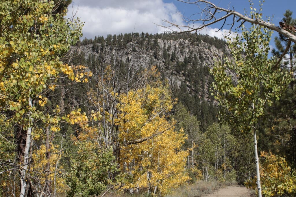 Golden aspens also are decorating each side of the dirt road/trail next to the resort.